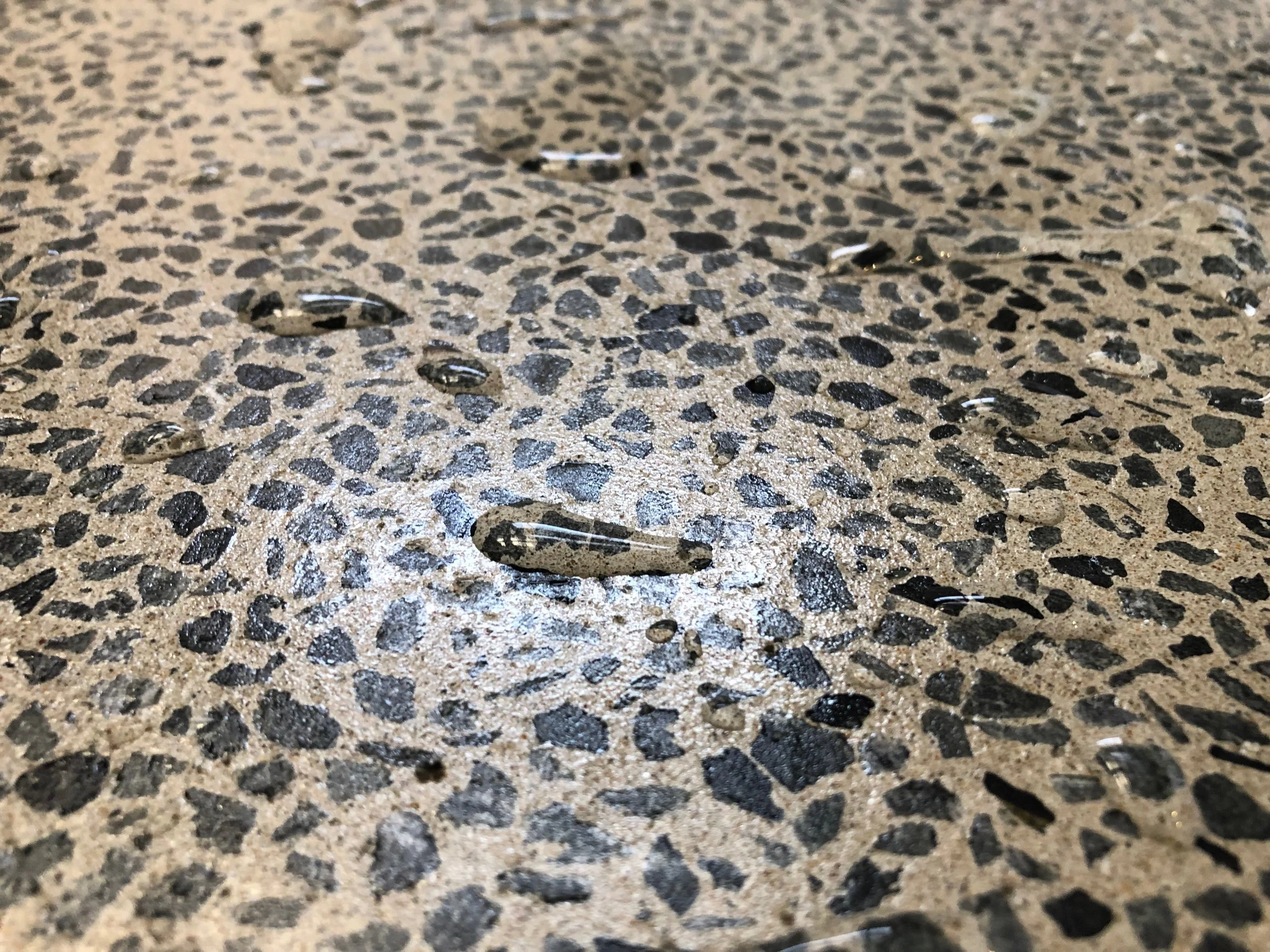 Burnished concrete outdoors can be very slippery. This outdoor dining area has been burnish as well as sealing it with a two pack urethane with non slip particle through it. The maintains the look of burnished concrete while achieving a non slip finish. Installed by Reems Concrete Concepts.