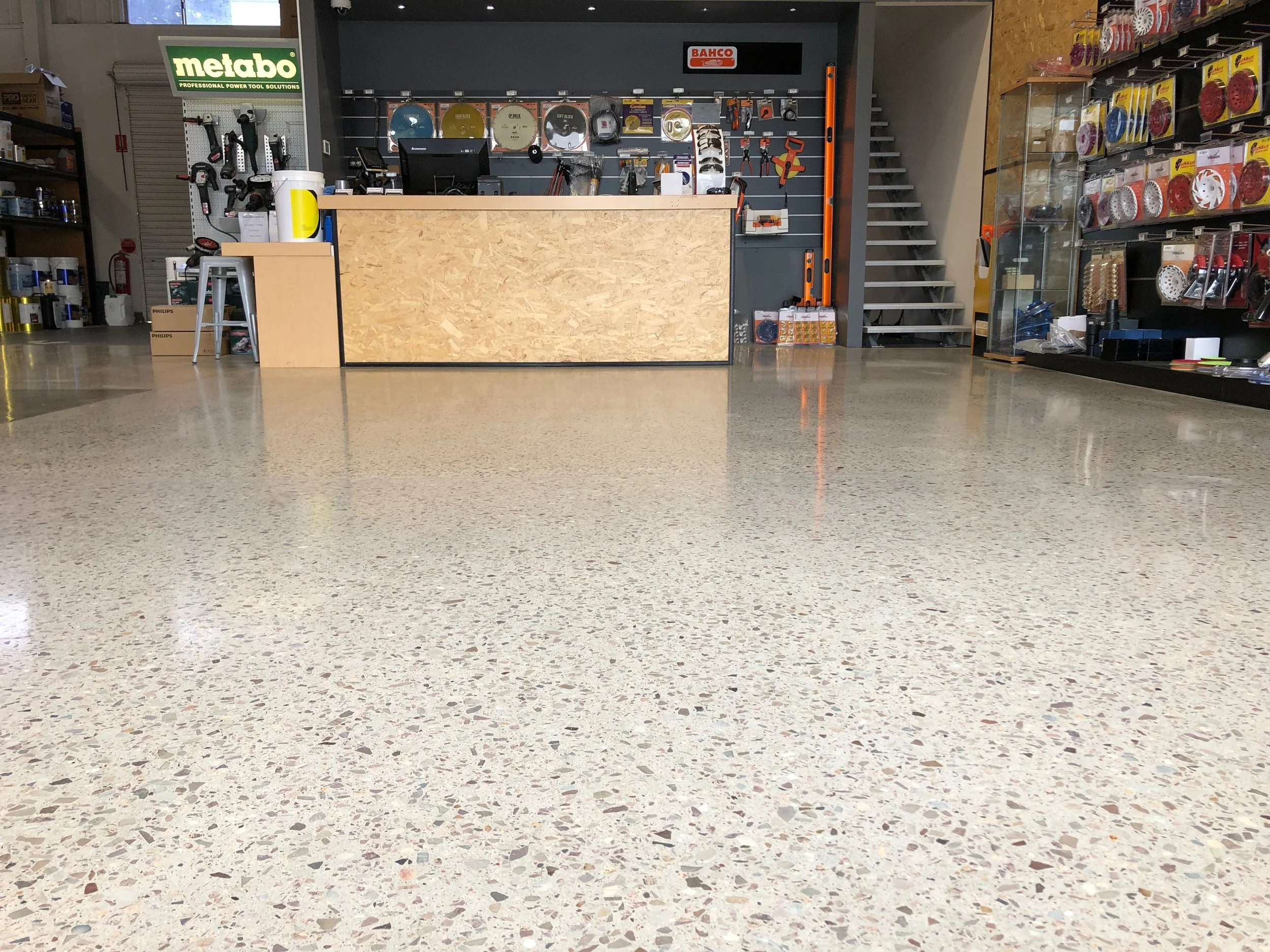 We have an amazing concrete flooring showroom located at 1/24 Trinder Ave Maroochydore. It showcases all the possibilities you can achieve from a concrete floor. Whether it be commercial or domestic applications, we have real life samples you can see and touch in our show room. Some of our samples include: